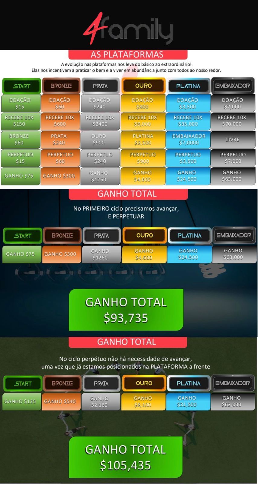 Avançar nos tabuleiros significa que você estará ajudando mais pessoas e consequentemente recebendo também doações cada vez mais significativas. Esse é o verdadeiro ciclo da abundância e prosperidade da 4 Family.